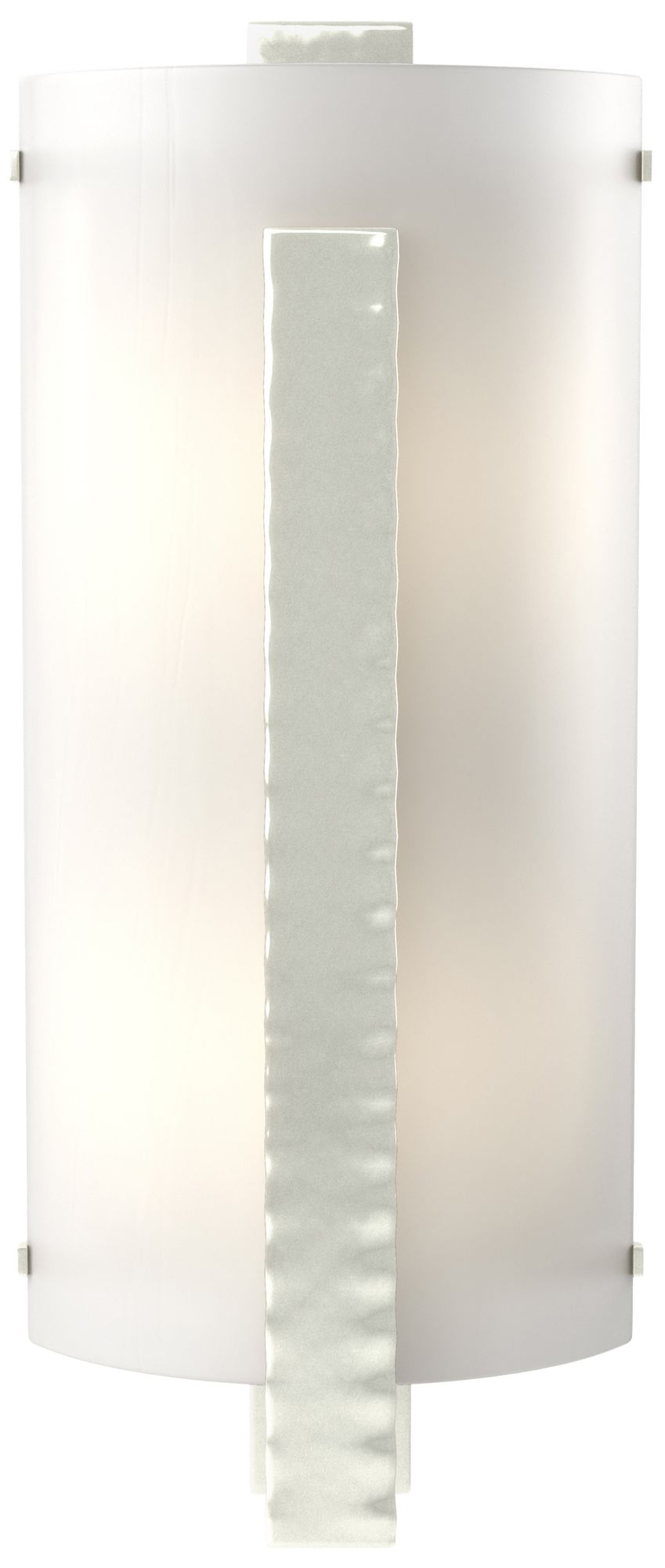 Forged Vertical Bar 18" High Sterling Sconce With White Art Glass Shad