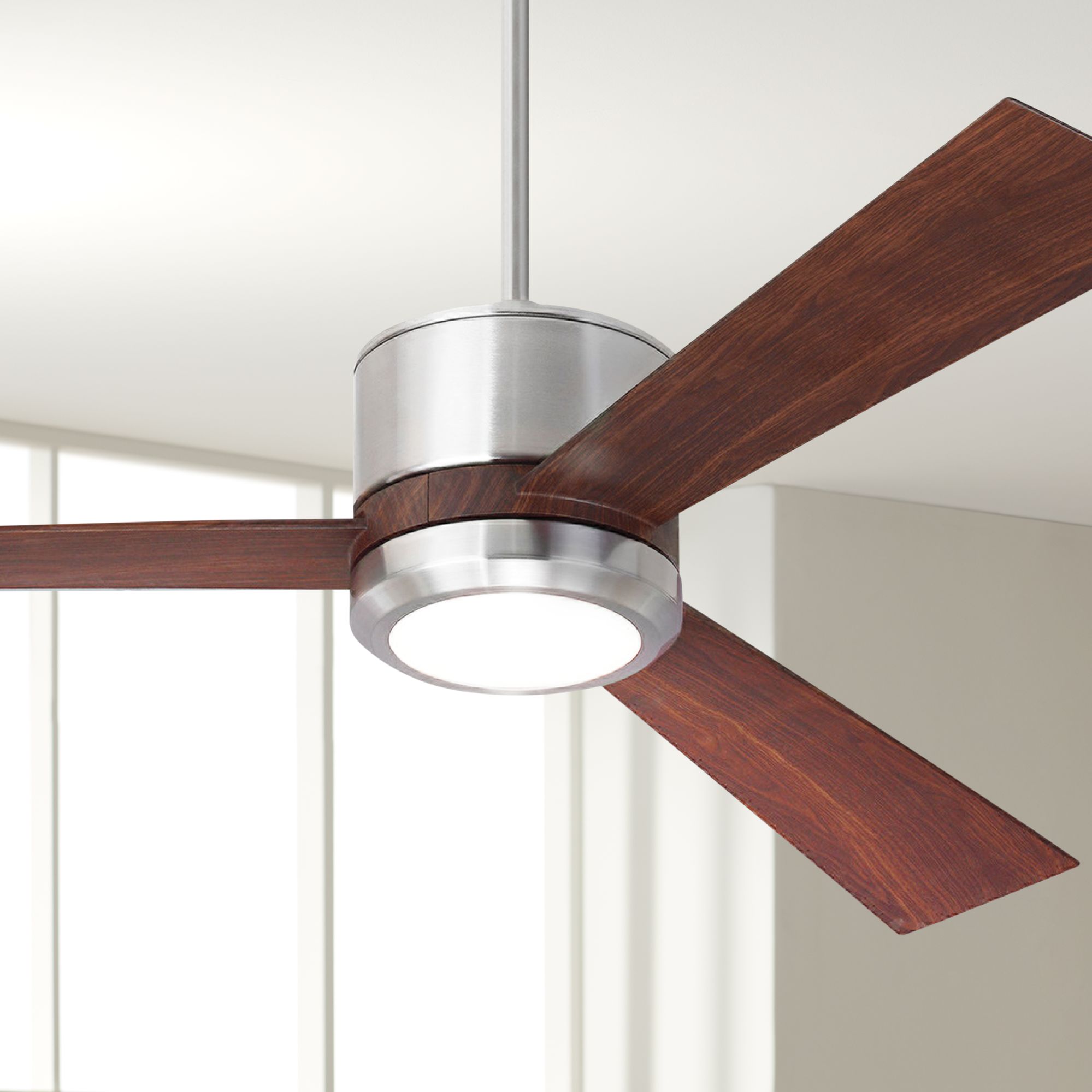 52" Monte Carlo Vision Max Brushed Steel and Teak LED Ceiling Fan