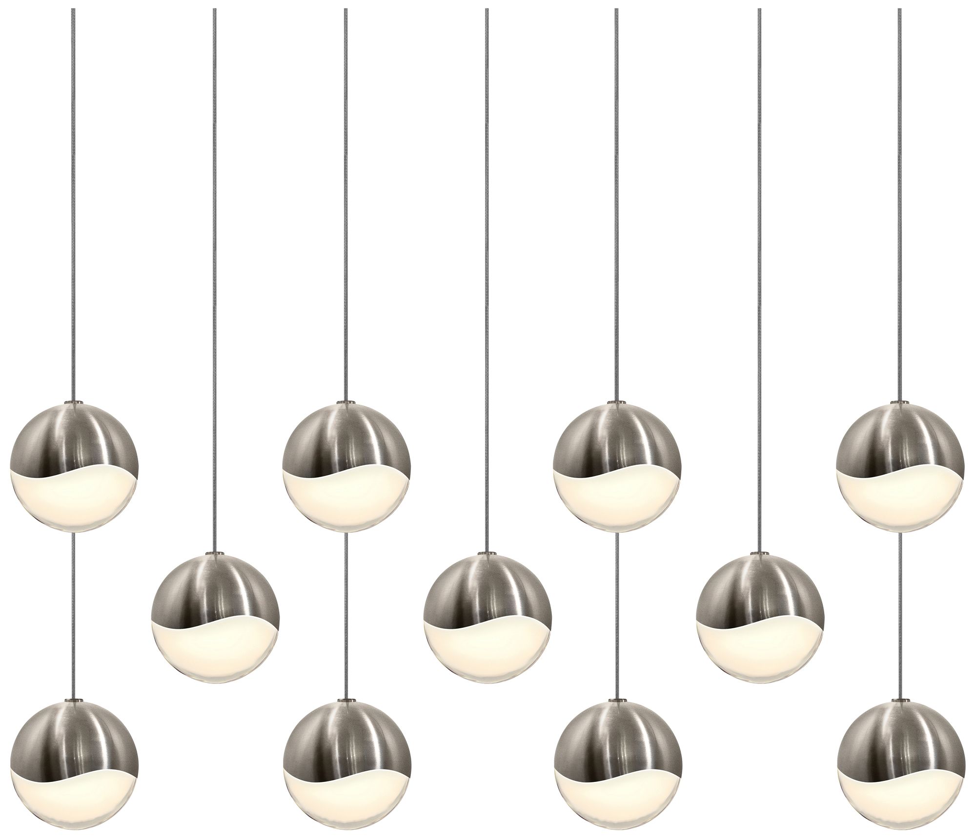 Grapes 37" Wide 11-Light Satin Nickel Medium Rectangle LED Pendant