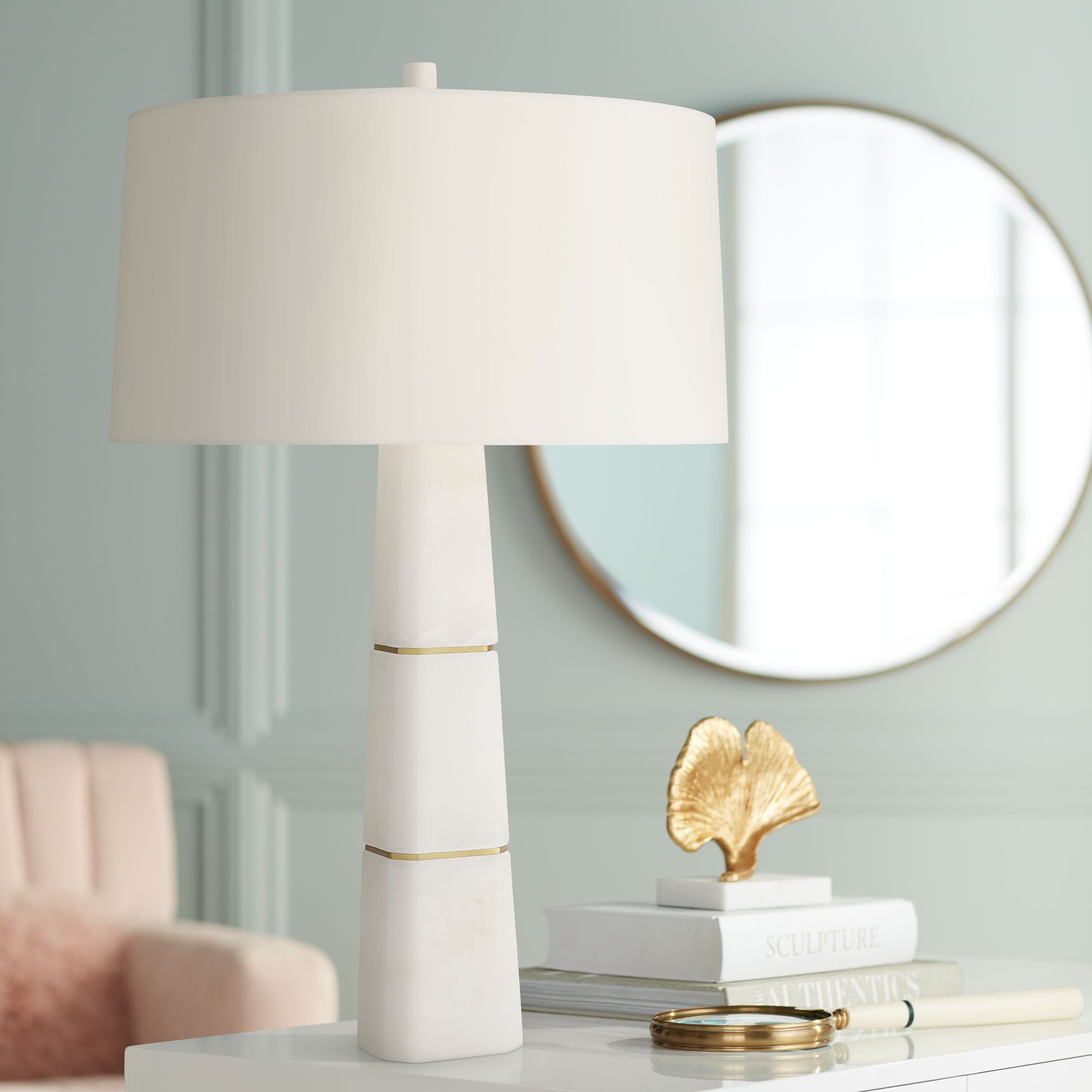 Arteriors Home Dosman 31" Snow Marble Obelisk Table Lamp