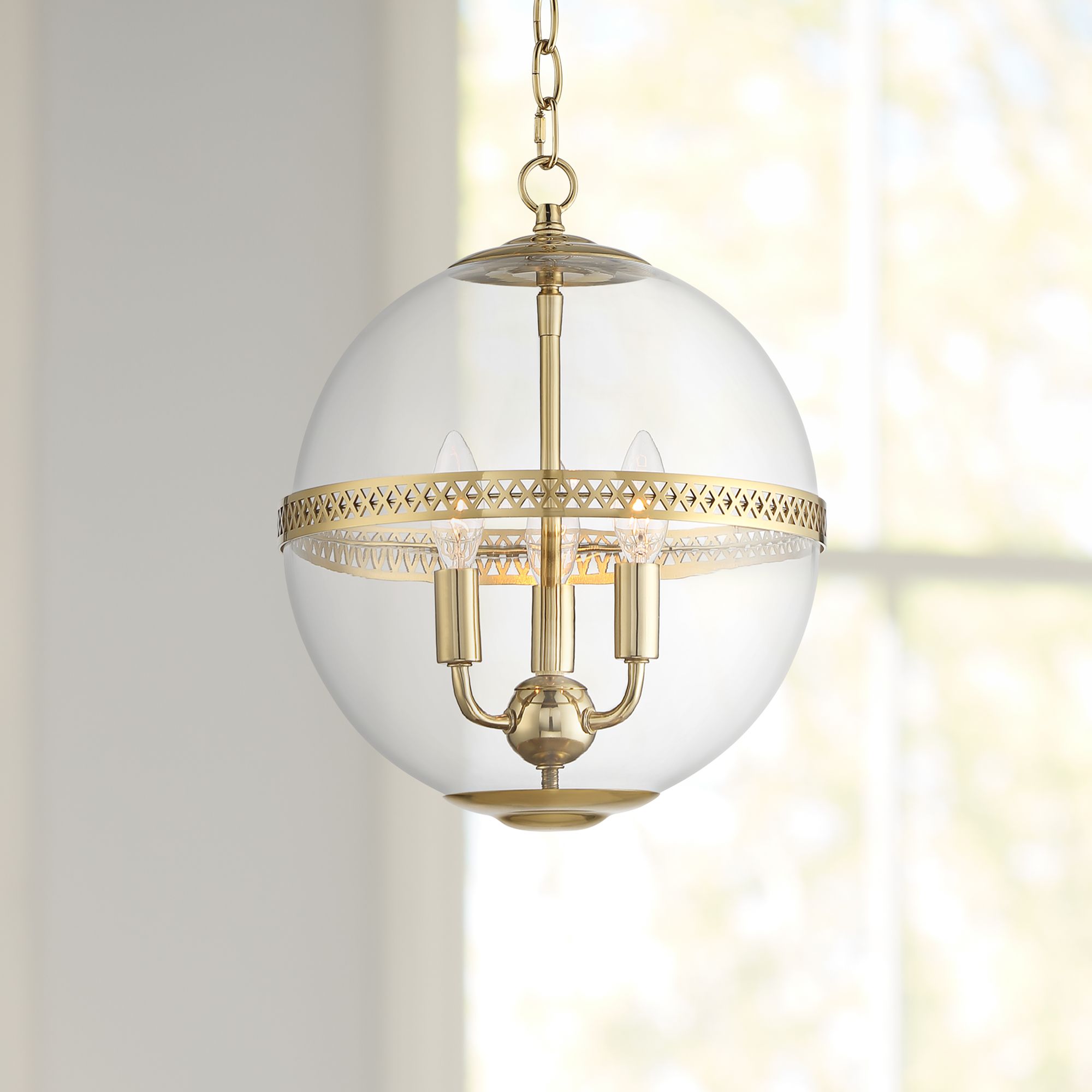 Stiffel Kaeli 12" Wide Aged Brass 3-Light Glam Globe Pendant Light