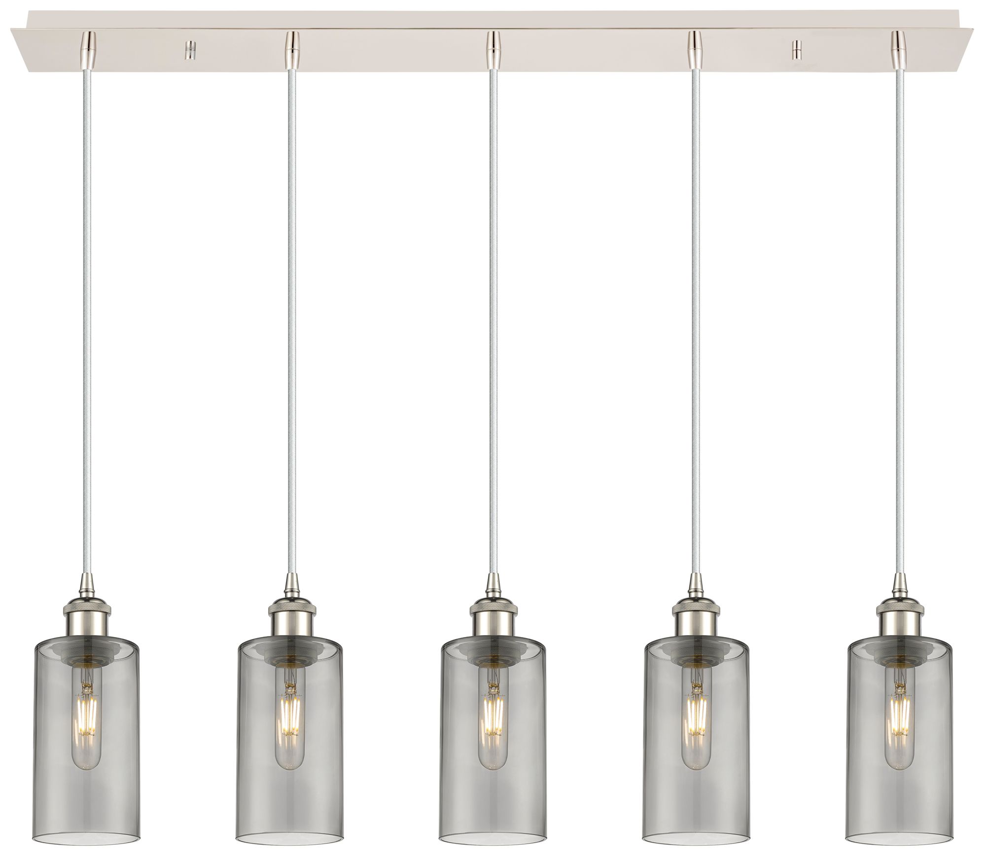 Crown Point 5 Light 37" Cord Hung Linear Pendant Nickel w/ Smoke Shade