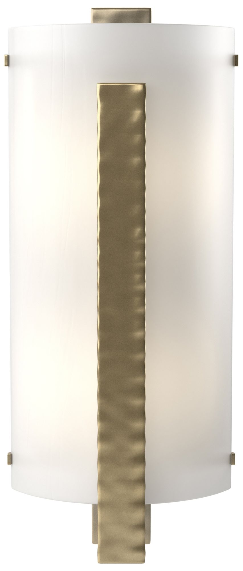 Forged Vertical Bar 18" High Modern Brass Sconce With White Art Glass