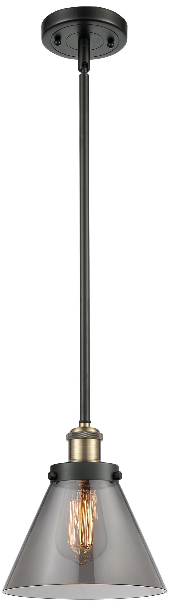Ballston Urban Cone 8" Black Brass Stemmed Mini Pendant w/ Smoke Shade