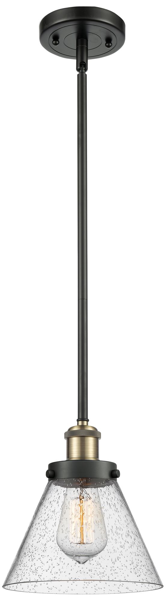 Ballston Urban Cone 8" Black Brass Stemmed Mini Pendant w/ Seedy Shade