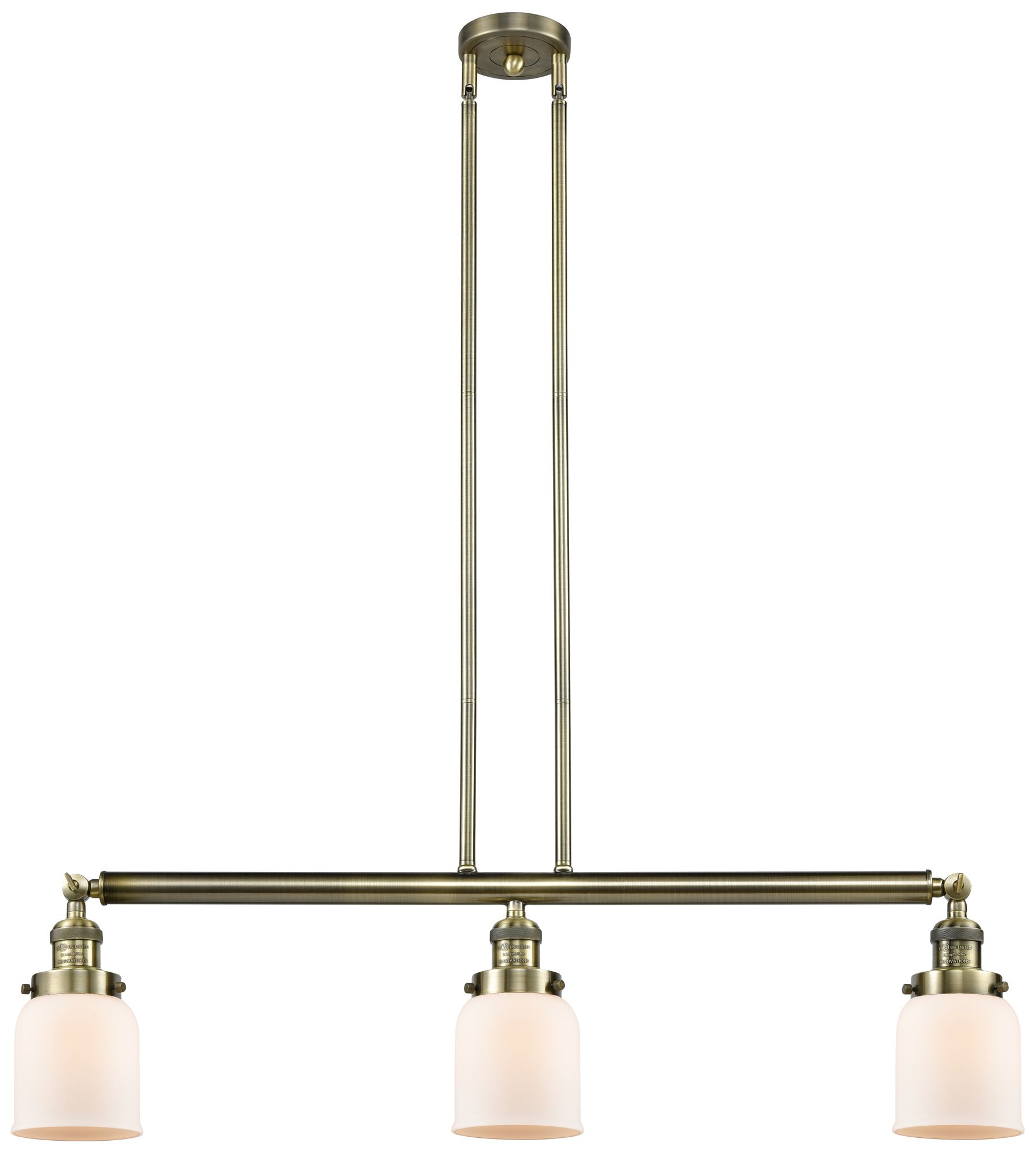 Bell 3 Light 38" Island Light - Antique Brass - Matte White Shade