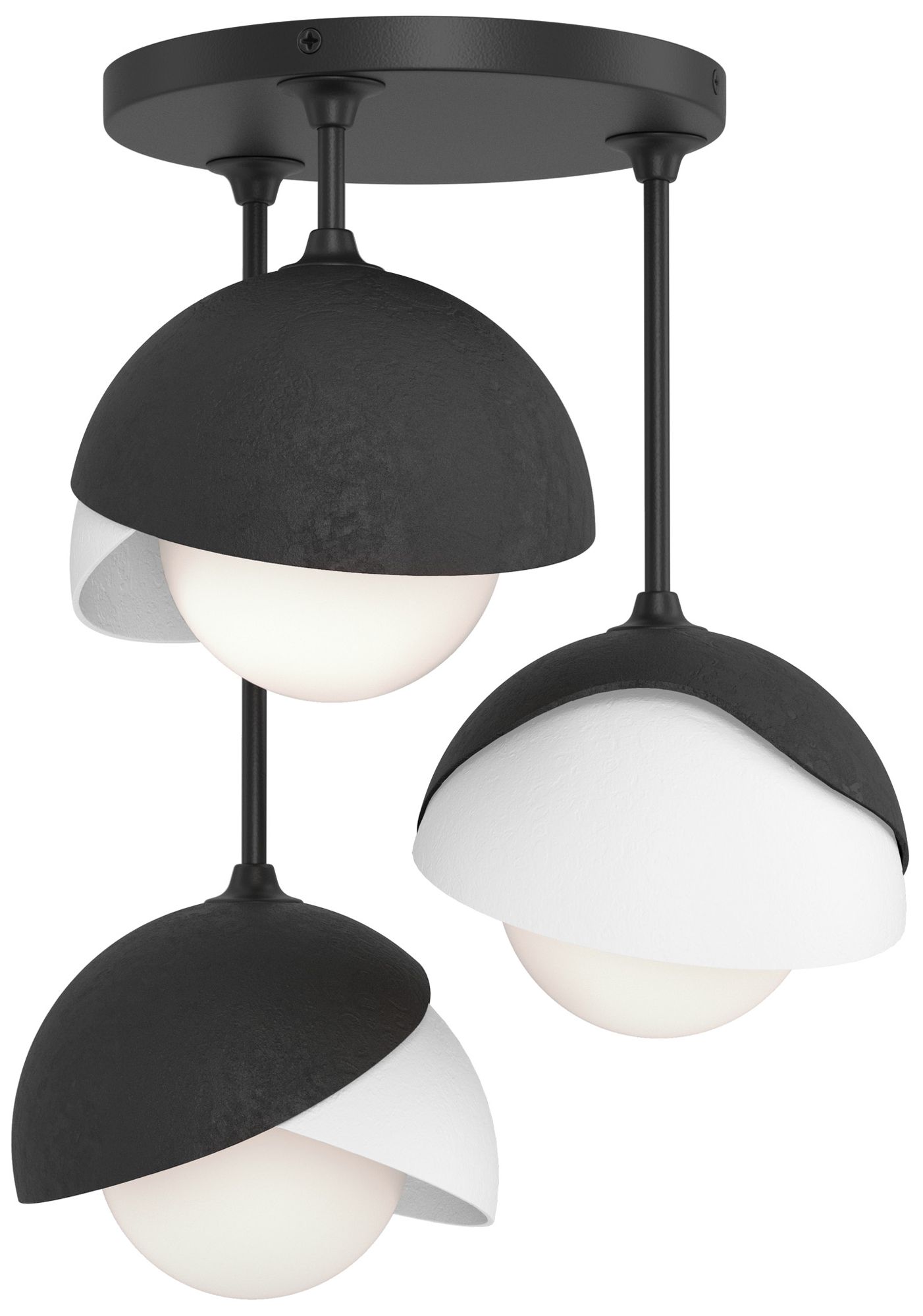 Brooklyn 12"W 3-Light White Accented Black Semi Flush w/ Opal Double S
