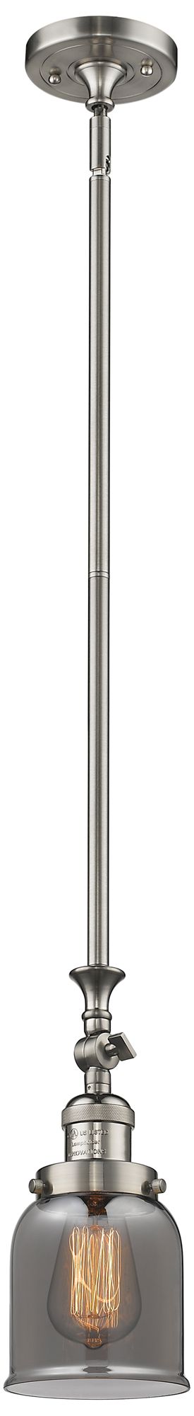 Bell 5"W Brushed Satin Nickel Stem Hung Mini Pendant w/ Plated Smoke S