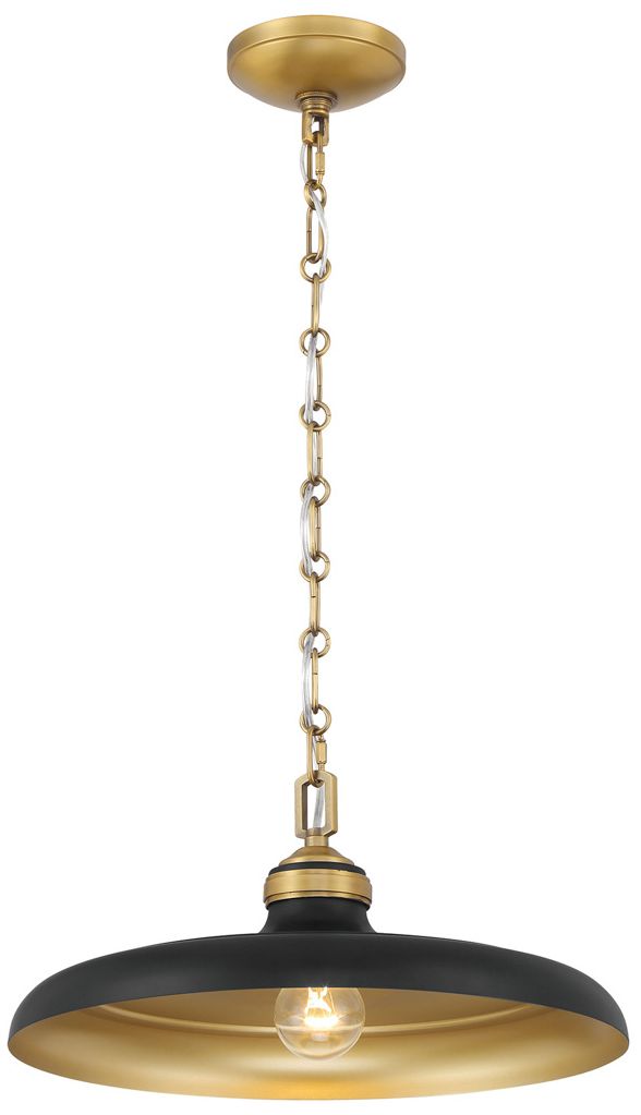 Crowne 16" Wide Matte Black and Legacy Brass Pendant Light