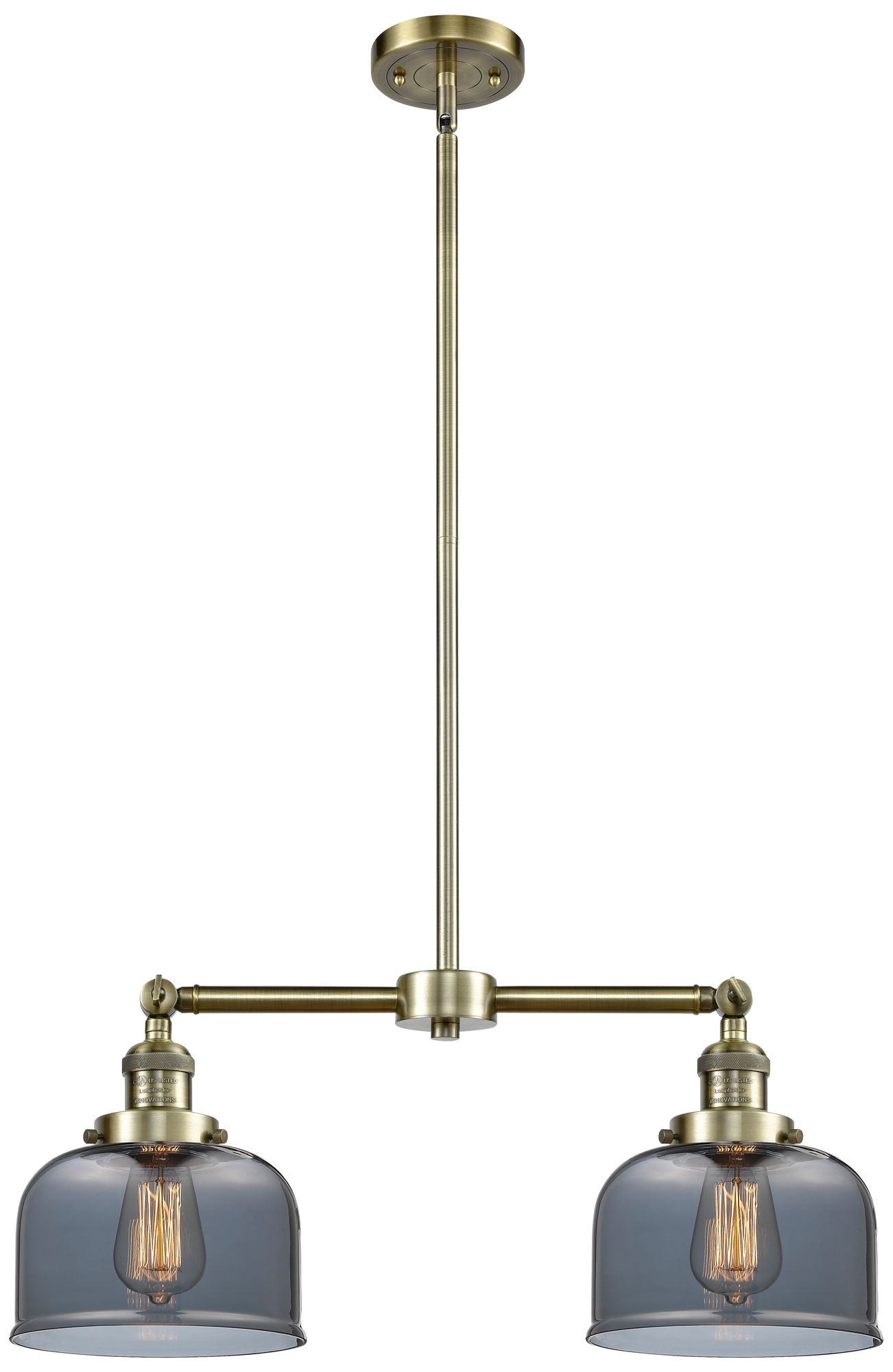 Large Bell 21" 2-Light Antique Brass Island Light w/ Plated Smoke Shad