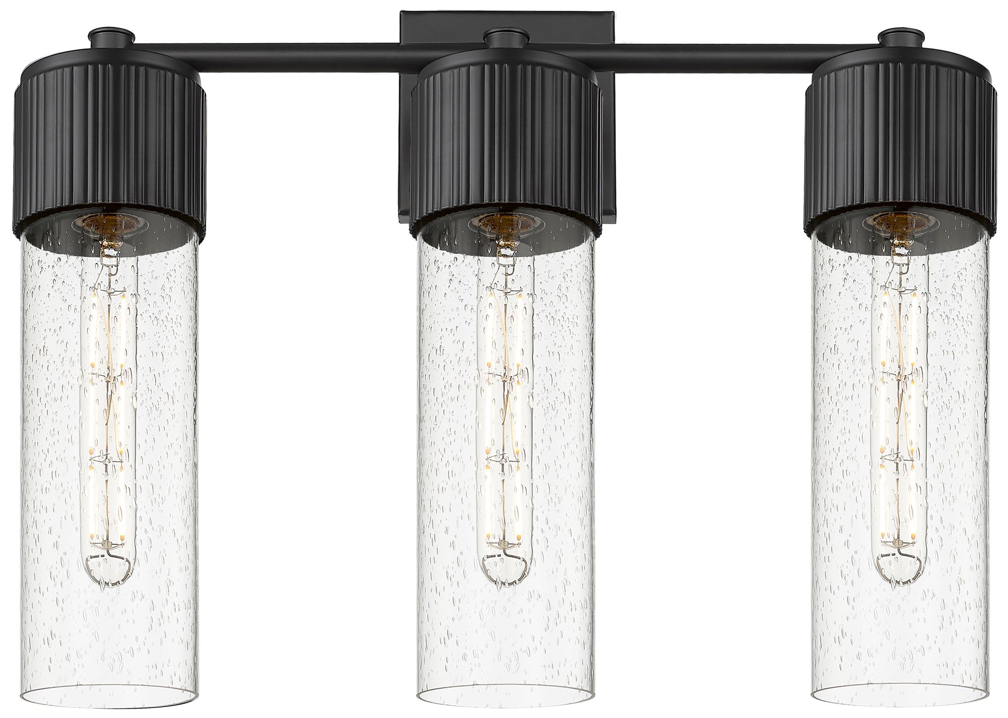 Bolivar 20.5" Wide 3 Light Matte Black Bath Light With Seedy Glass Sha