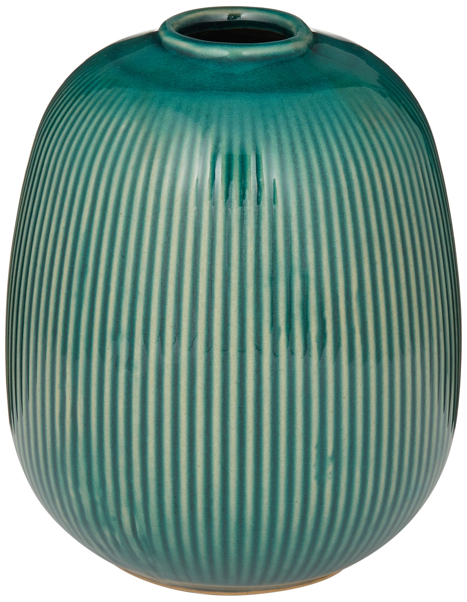 Pilar 6 1/4" High Shiny Green Ridged Ceramic Vase