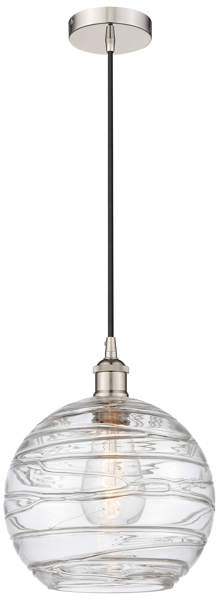 Athens 10" Polished Nickel Mini Pendant w/ Clear Deco Swirl Shade