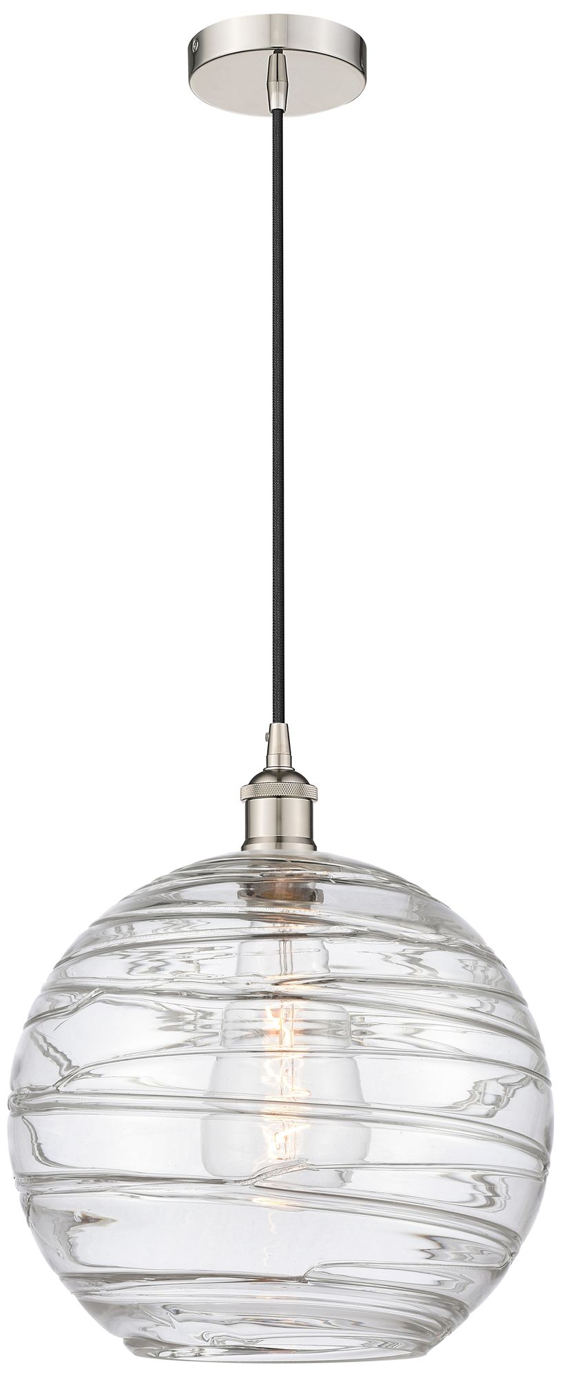 Athens 12" Polished Nickel Mini Pendant w/ Clear Deco Swirl Shade