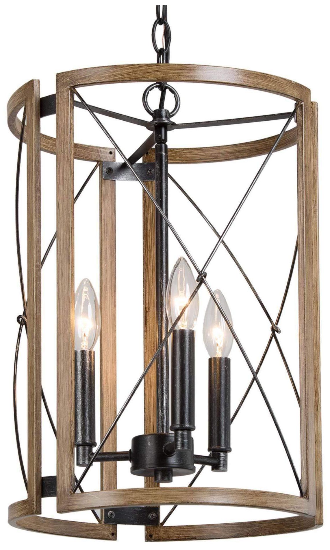 Follio 12" Wide Faux Wood Black 3-Light Mini-Chandelier
