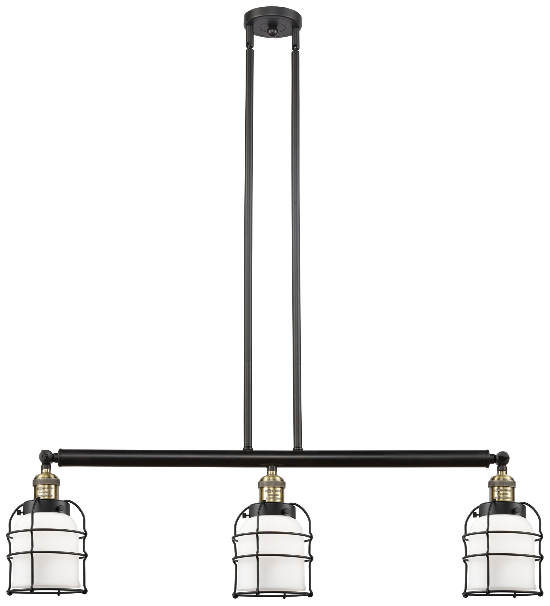 Franklin Bell Cage 38.5"W 3 Light Black Brass Island Light w/ White Sh