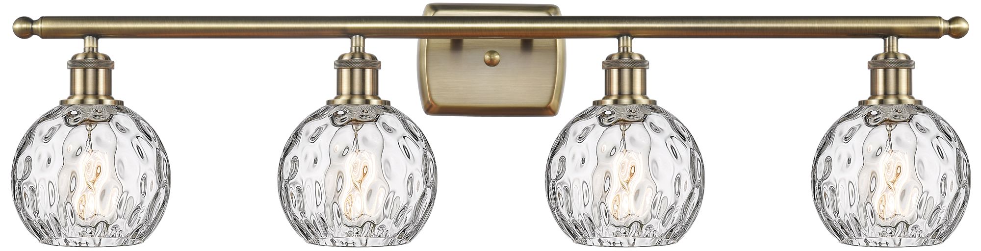 Athens Water Glass 6" 4 Light 36" Bath Light - Antique Brass - Cl
