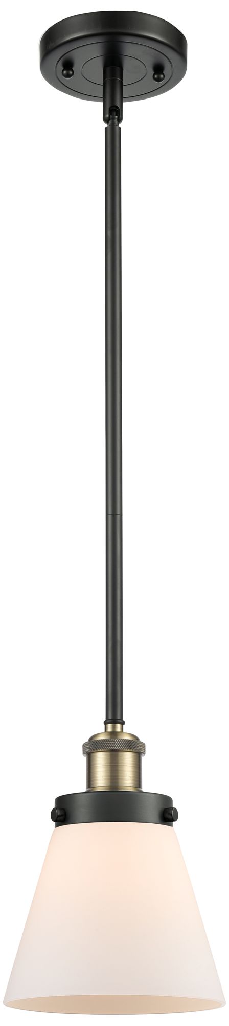 Ballston Urban Cone 6" Black Brass Stemmed Mini Pendant w/ White Shade