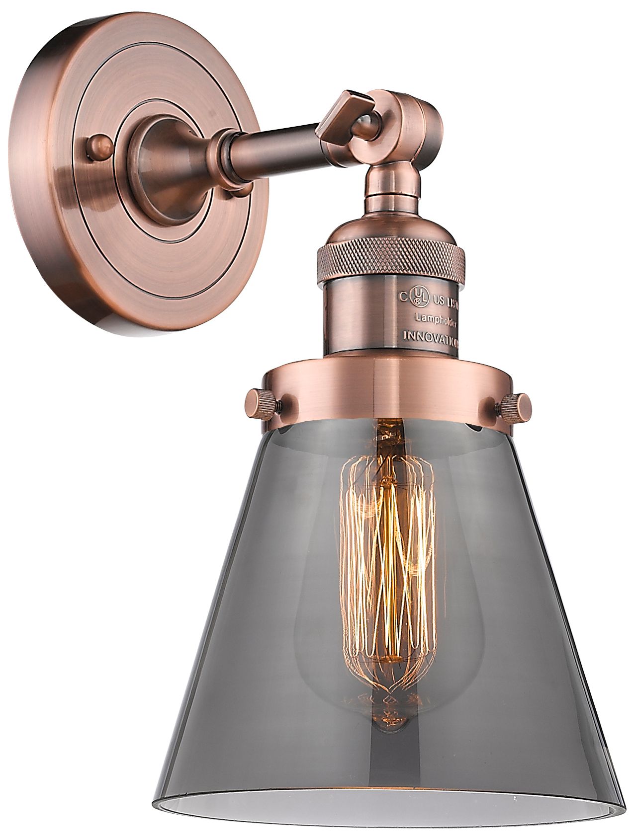 Franklin Restoration Small Cone 6" Antique Copper Sconce w/ Smoke Shad