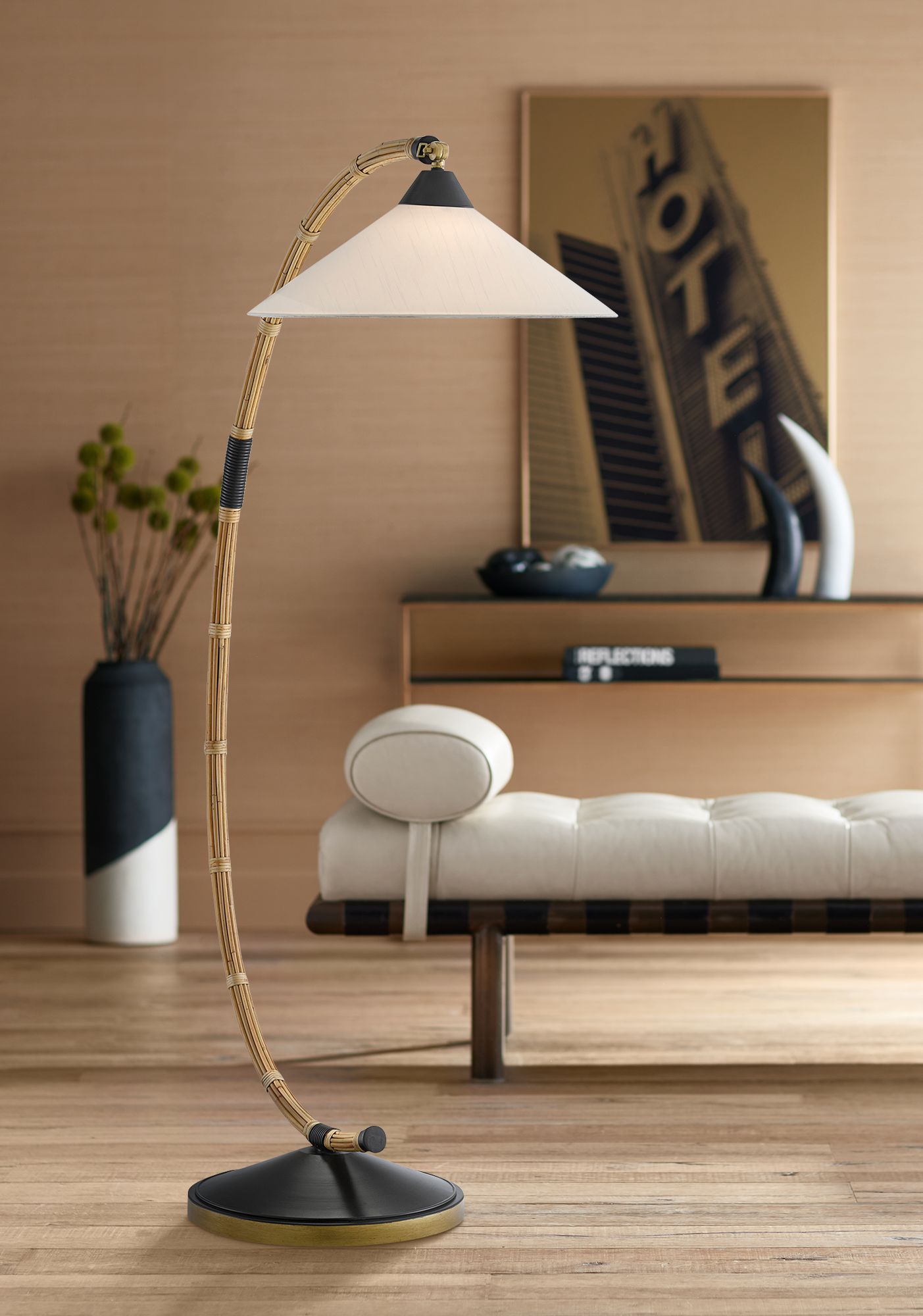 Currey & Company Lisbon 61 1/2" Arc Arm Natural Rattan Floor Lamp