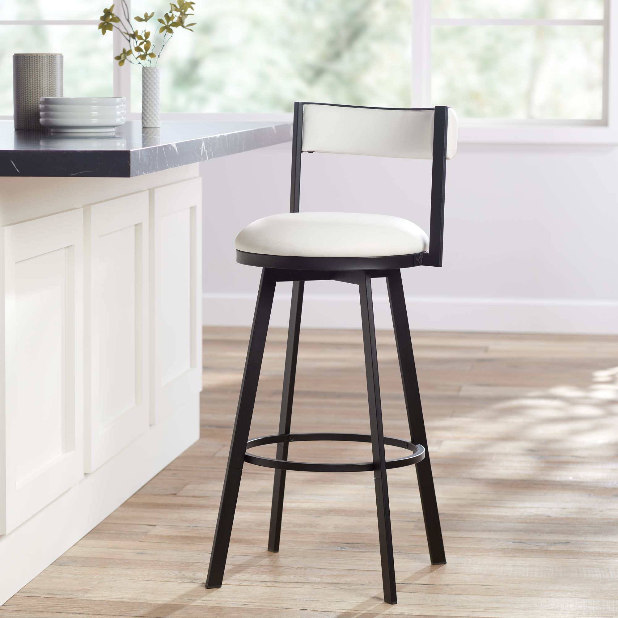 Adaya 25 1/2" Black Metal and White Faux Leather Swivel Counter Stool