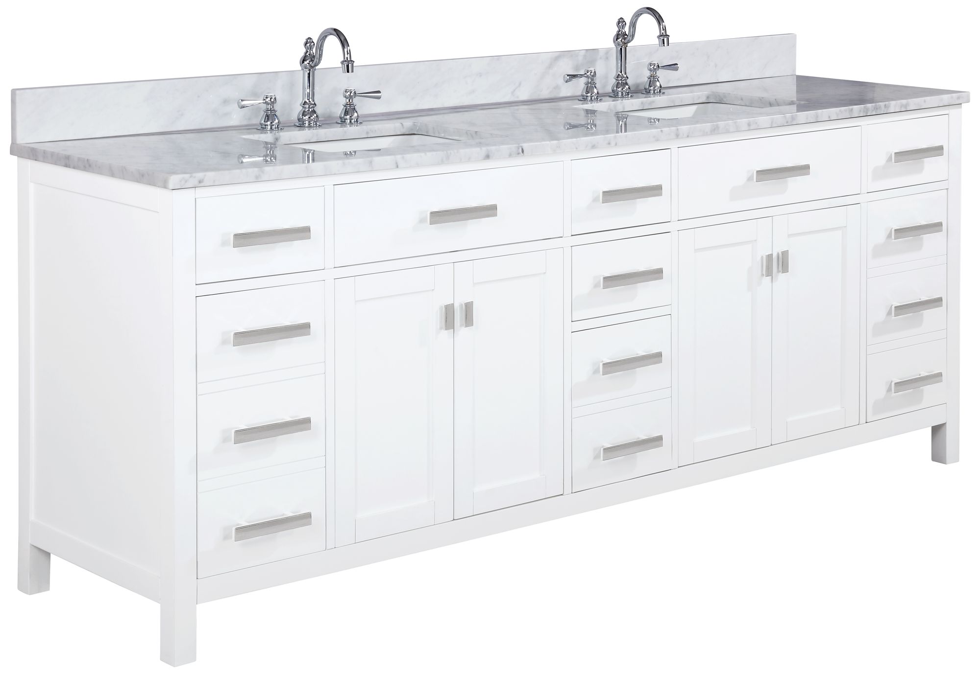 Valentino 84" Wide White Wood 7-Drawer Double Sink Vanity