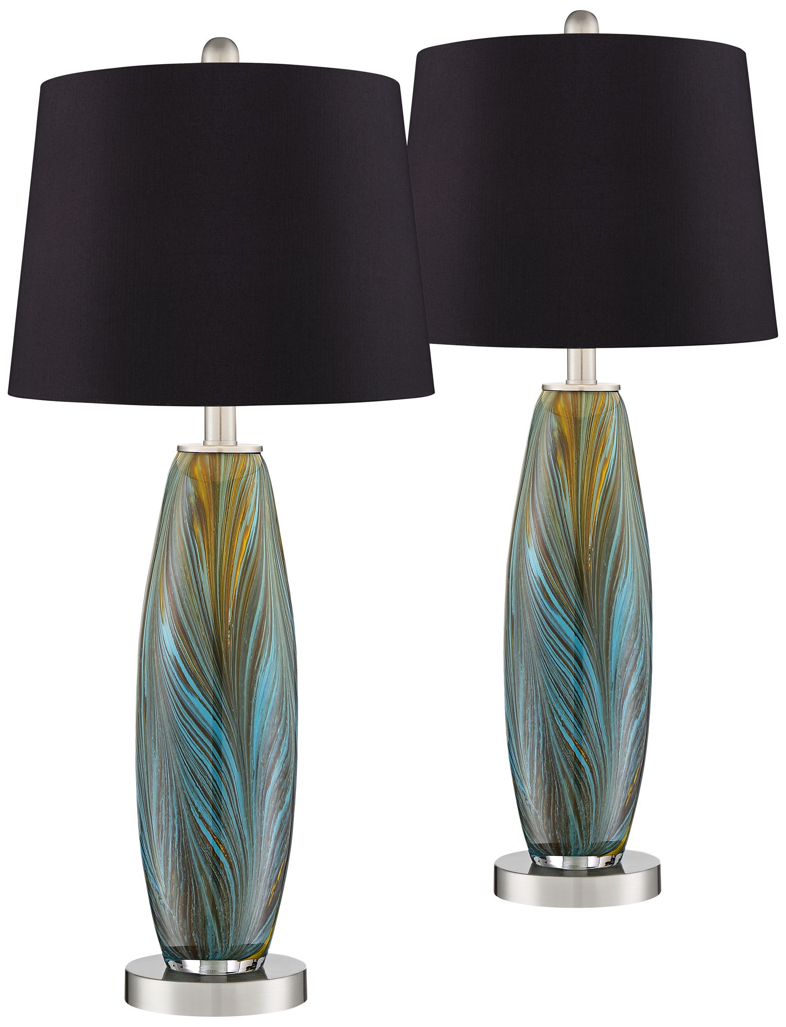 360 Lighting Azure 26 3/4" Black Shade Art Glass Table Lamps Set of 2