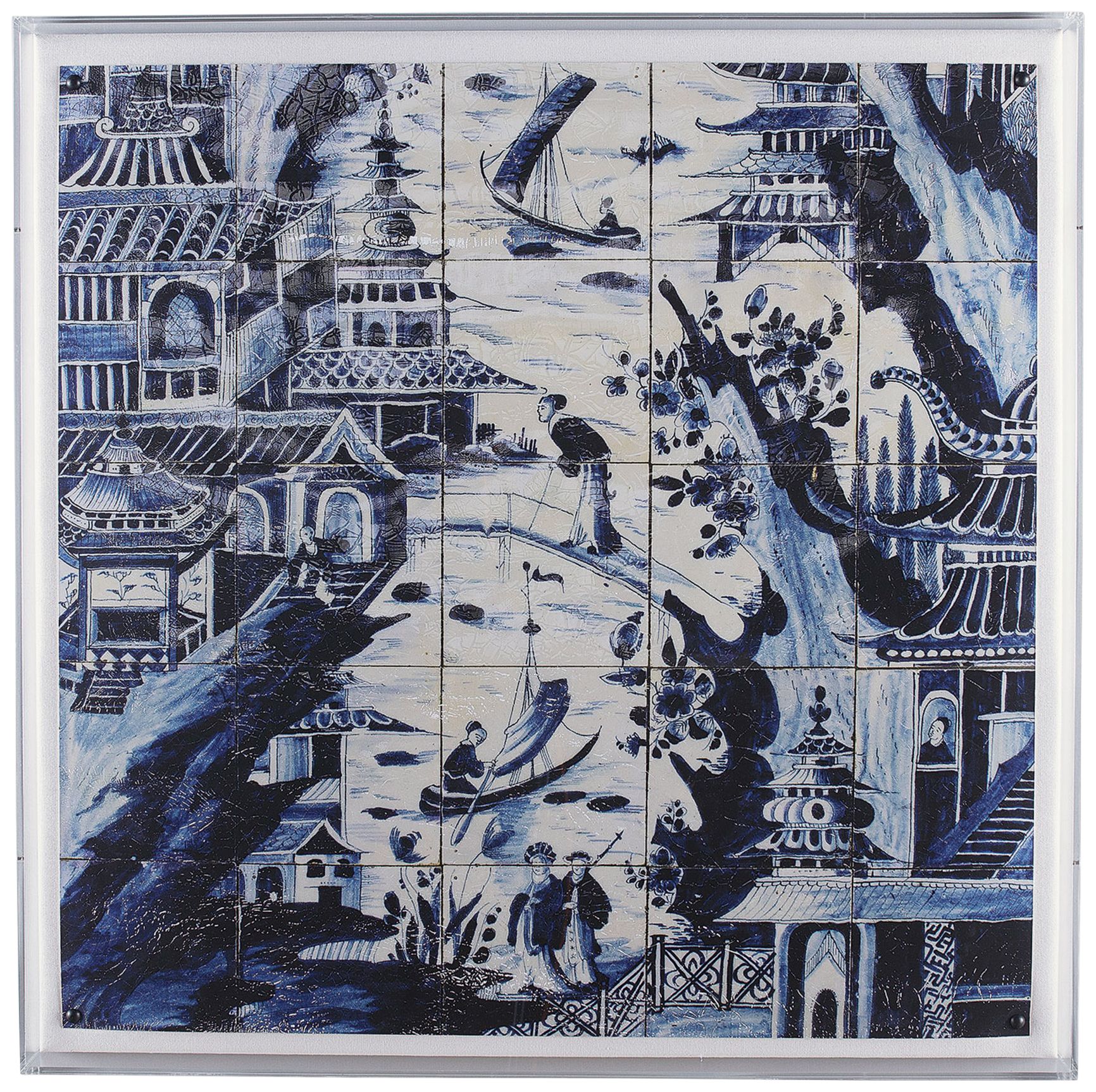 Delft Tile II 30" Square Shadow Box Giclee Canvas Wall Art