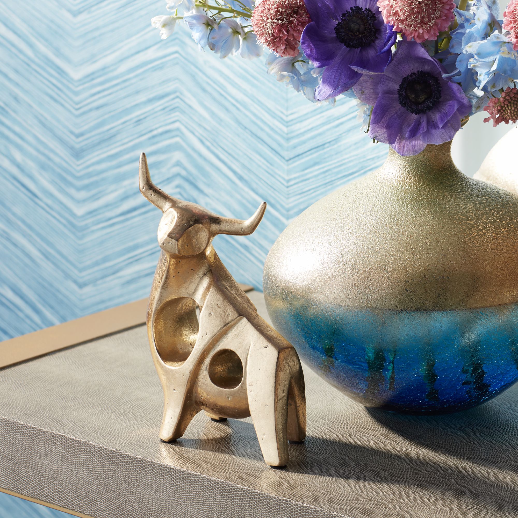 Bull 9" High Shiny Gold Statue