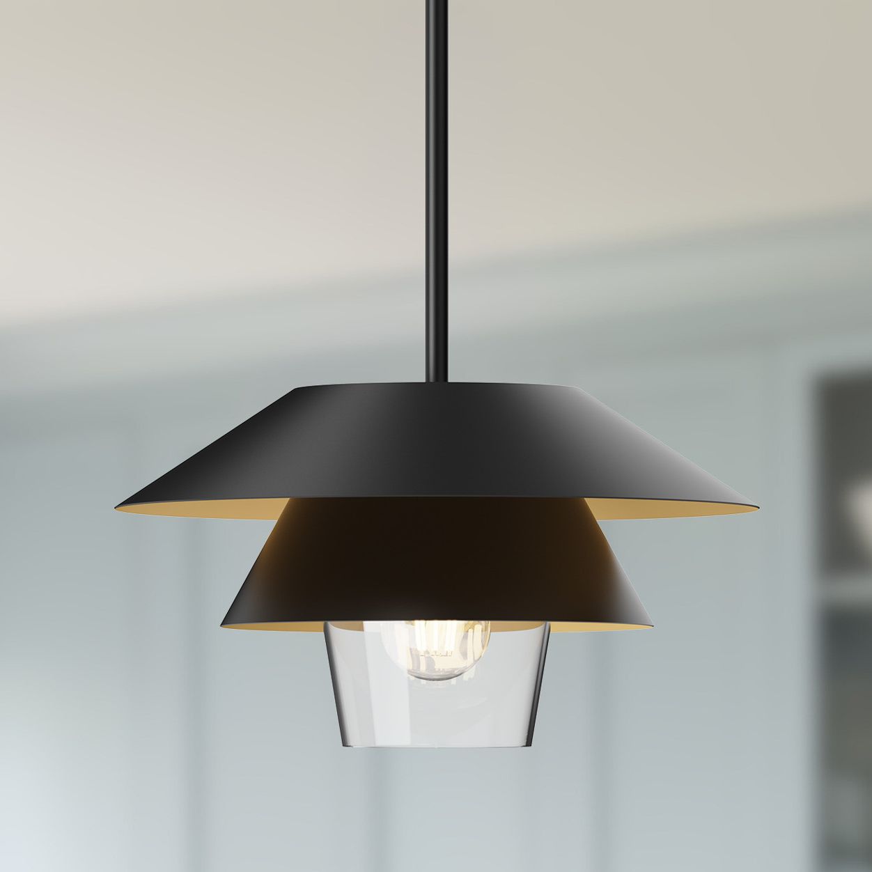 Alora Mood Tetsu E26 13-in Matte Black/Clear Glass Pendant