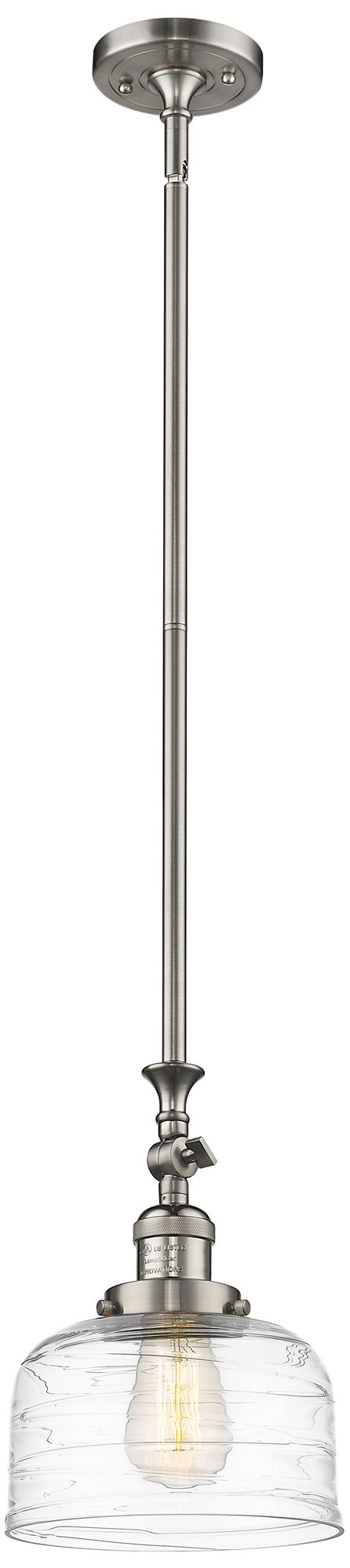 Bell 8"W Brushed Satin Nickel Stem Hung Mini Pendant w/ Deco Swirl Sha