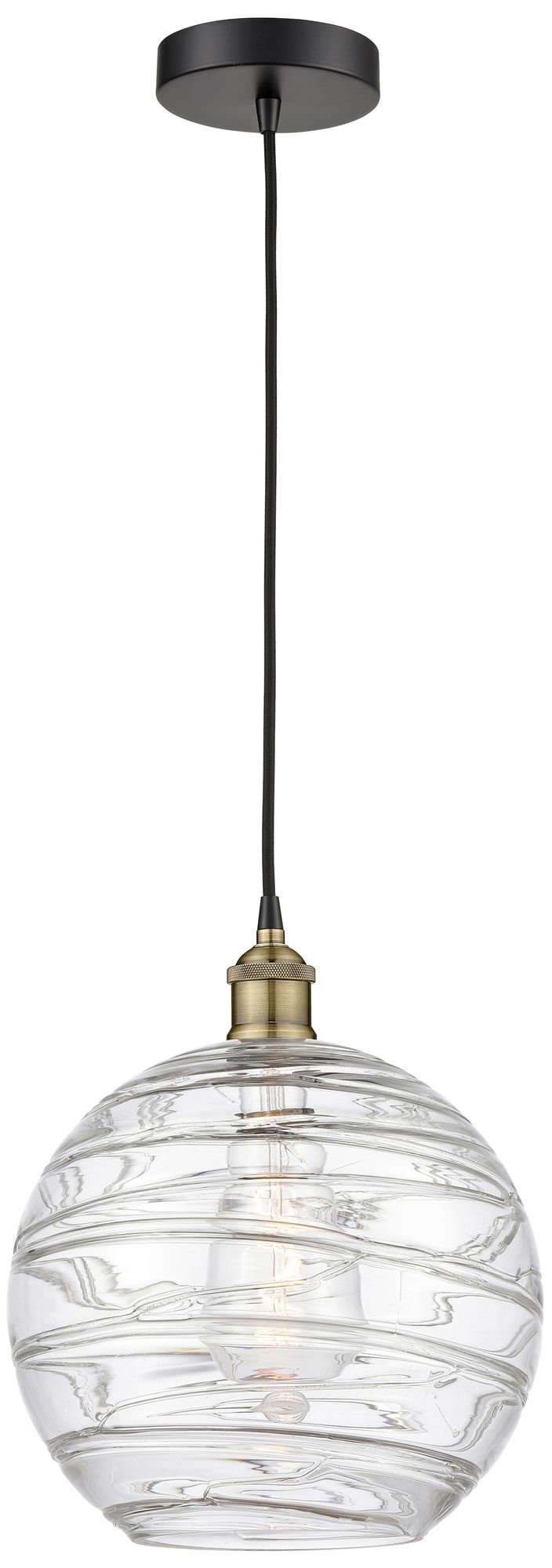 Athens 12" Wide Black Brass Corded Mini Pendant w/ Deco Swirl Shade