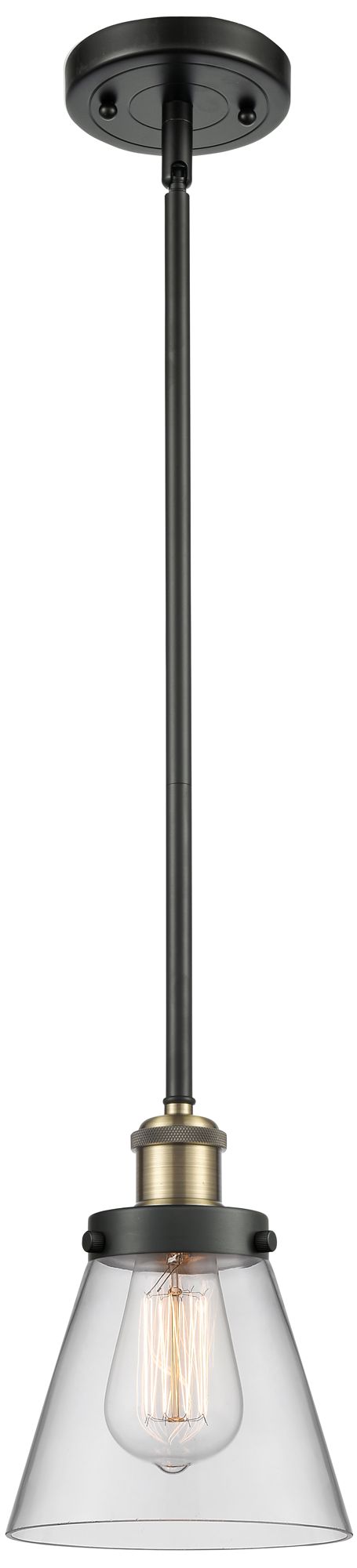 Ballston Urban Cone 6" Black Brass Stemmed Mini Pendant w/ Clear Shade