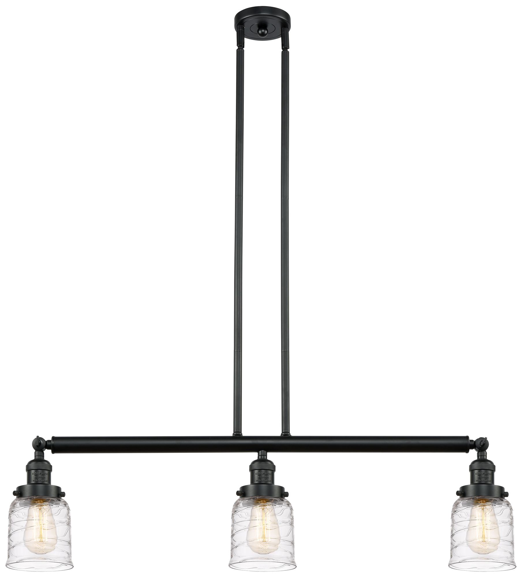 Bell 3 Light 38" Island Light - Matte Black - Deco Swirl Shade