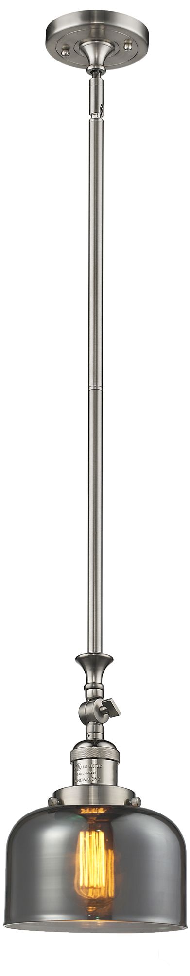 Bell 8"W Brushed Satin Nickel Stem Hung Mini Pendant w/ Plated Smoke S