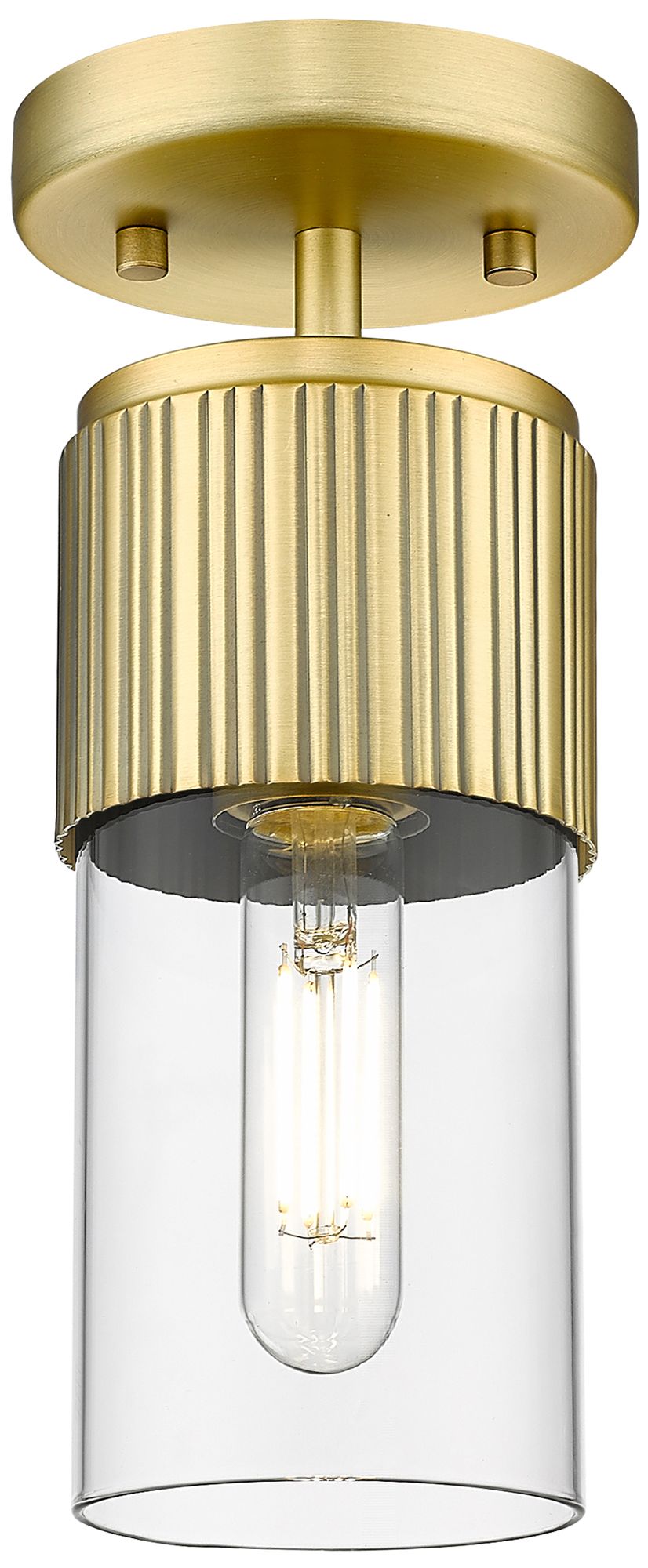 Bolivar 4" Wide Brushed Brass Flush Mount With Clear Glass Shade