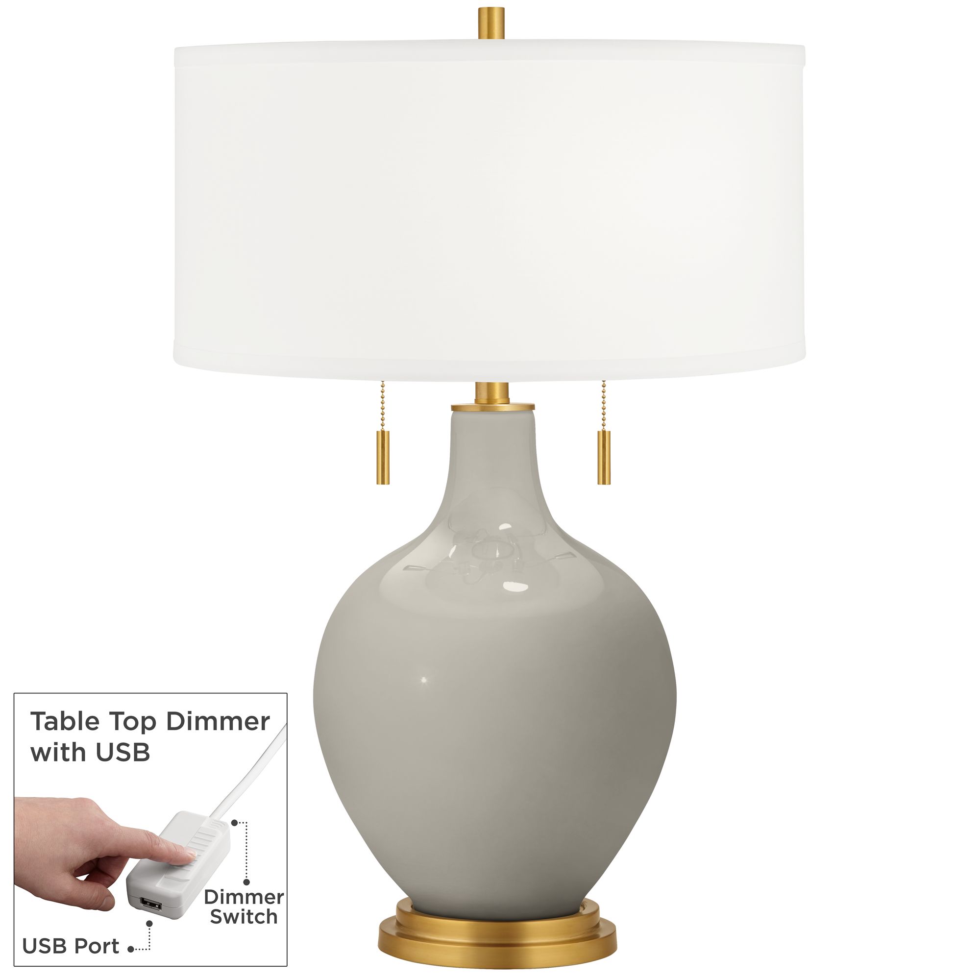 Color Plus Toby Brass 28" Requisite Gray Table Lamp with USB Dimmer