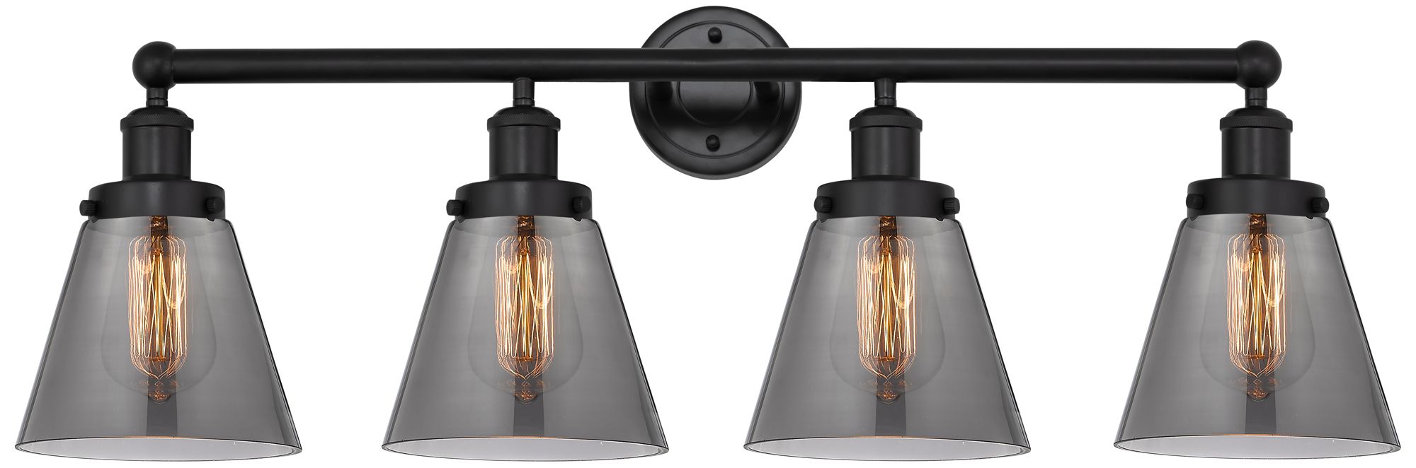 Edison Small Cone 34" 4-Light Matte Black Bath Light w/ Plated Smoke S