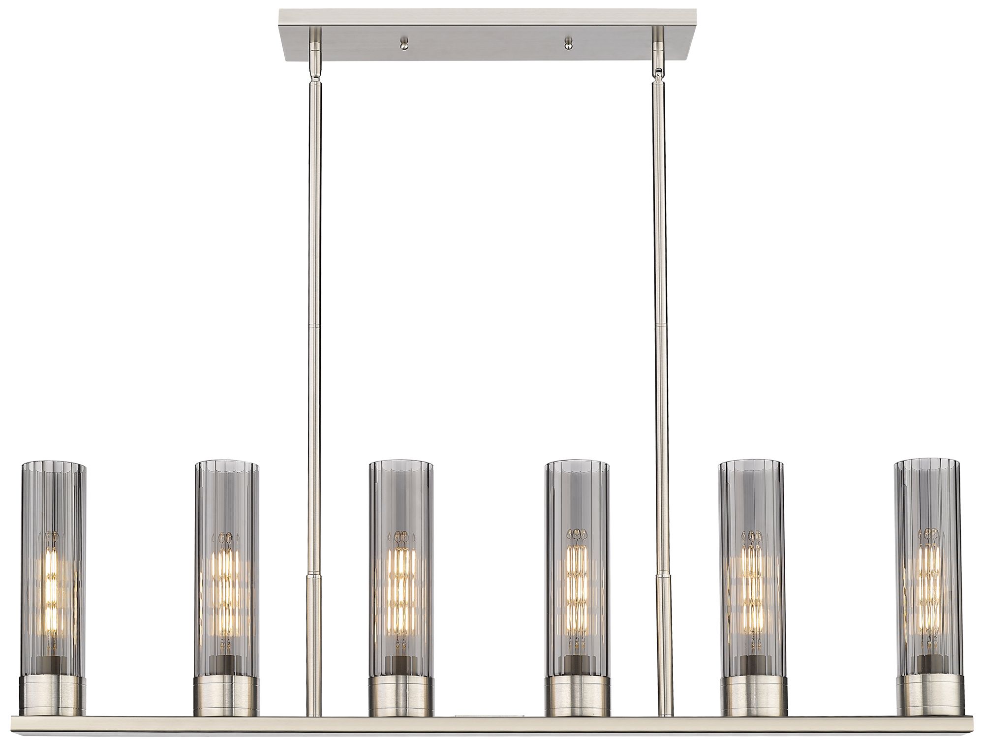 Empire 44.25"W 6 Light Stem Hung Satin Nickel Linear Pendant w/ Smoke