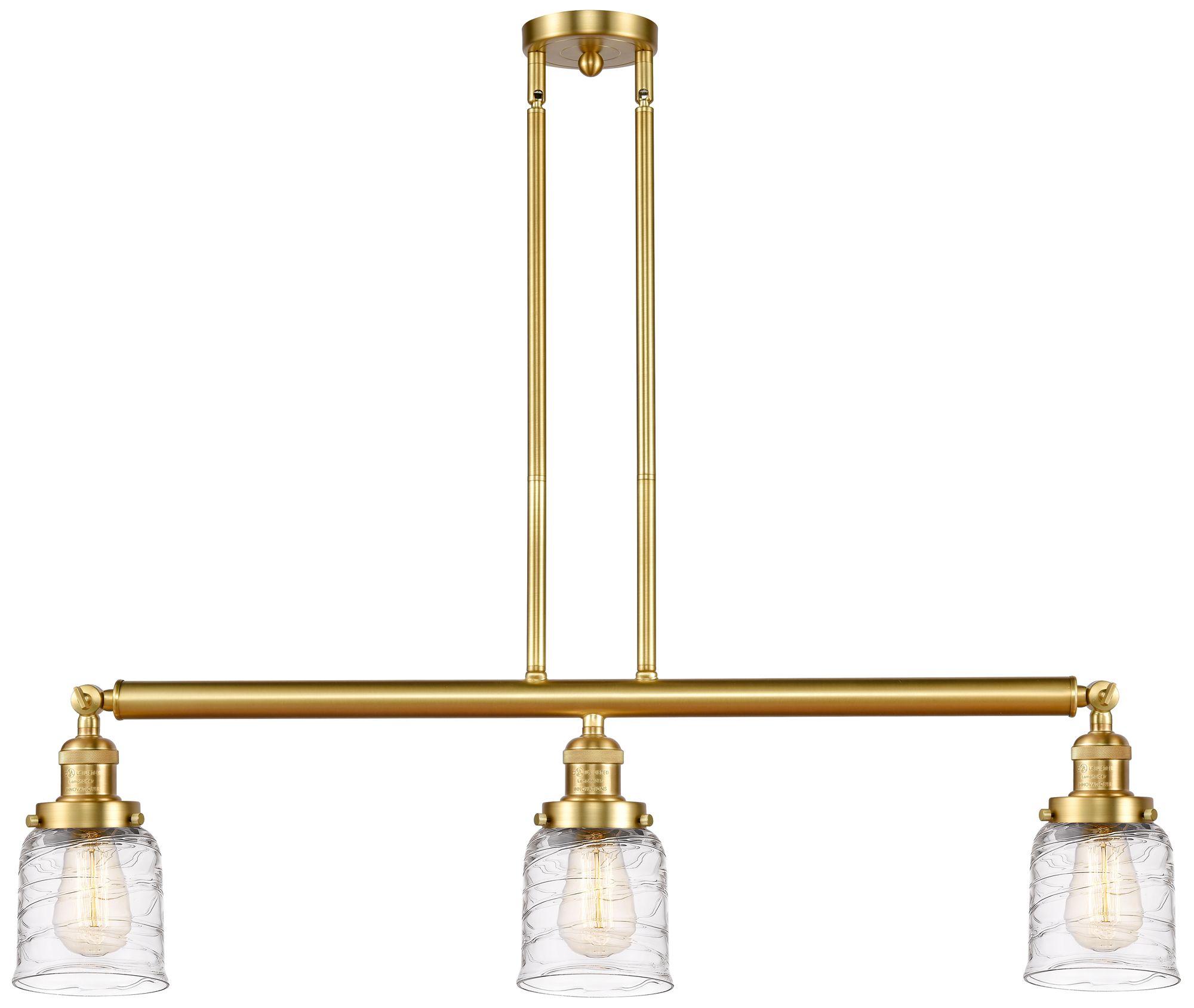 Bell 3 Light 38" Island Light - Satin Gold - Deco Swirl Shade