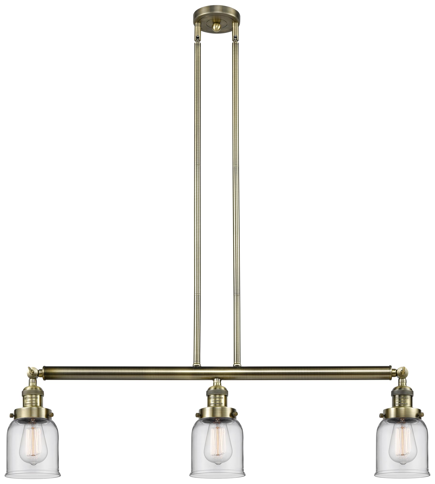 Bell 3 Light 38" LED Island Light - Antique Brass - Clear Shade