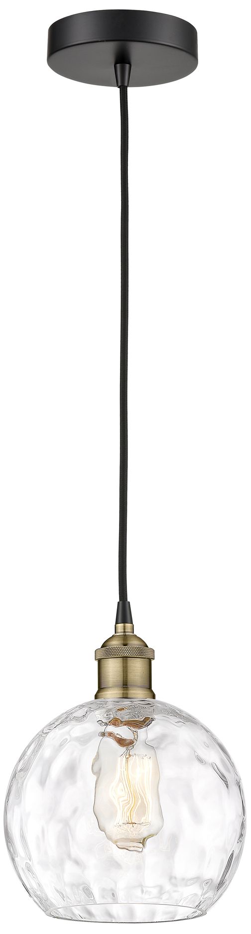 Athens 8" Wide Black Brass Corded Mini Pendant w/ Water Glass Shade