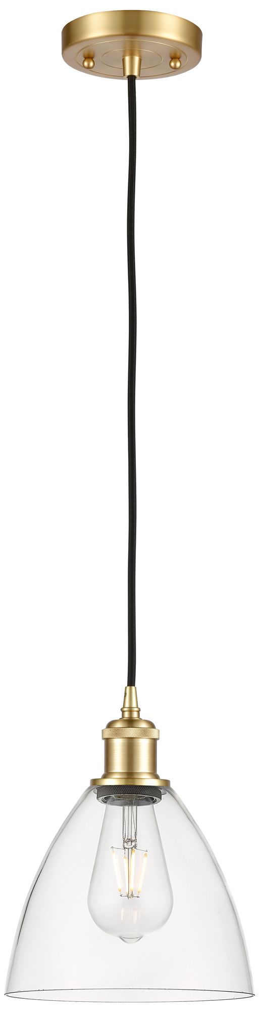 Ballston Bristol Glass 8" LED Mini Pendant - Satin Gold - Clear Shade