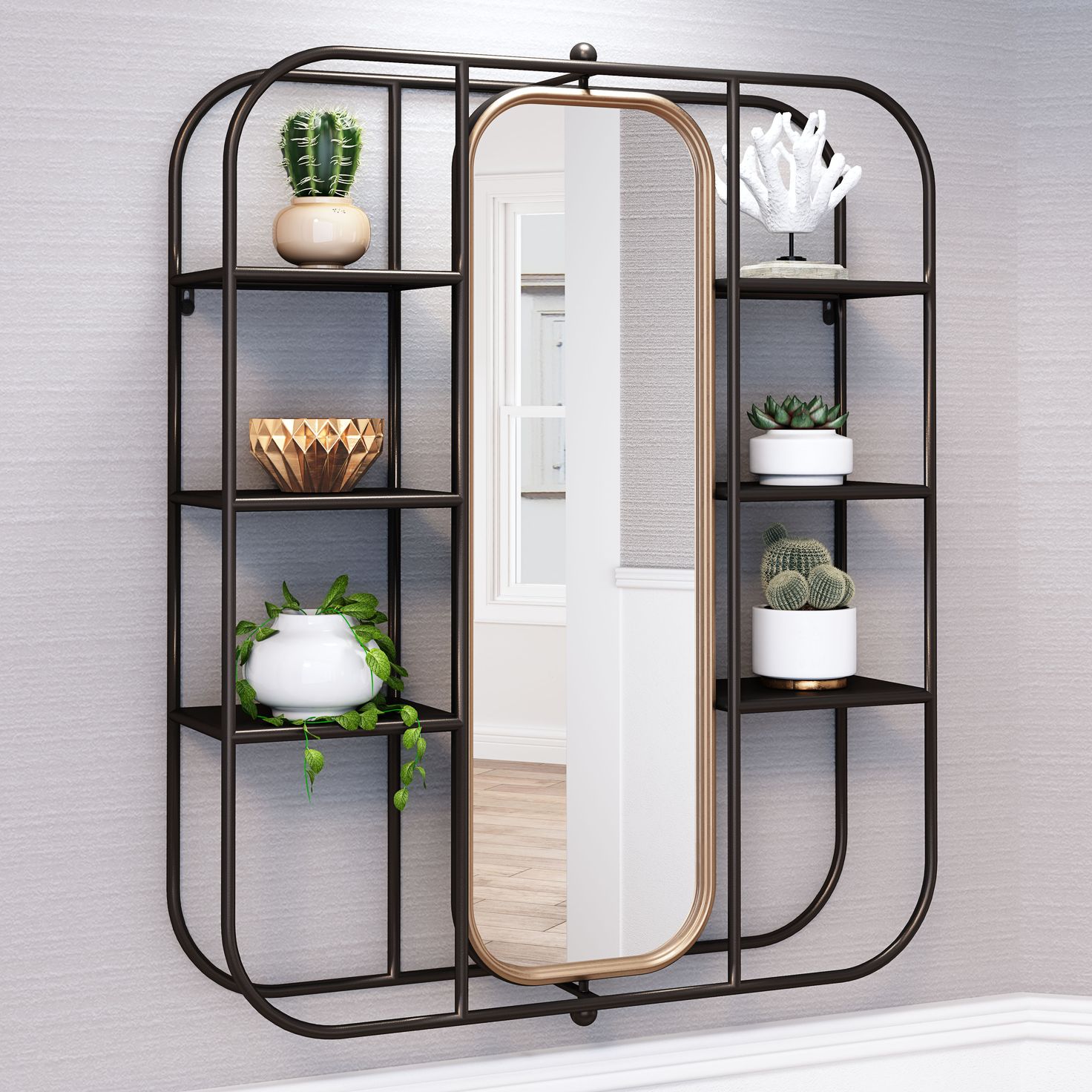 Zuo Alice Gray and Gold 27 1/2" x 33" Wall Mirror with Shelf