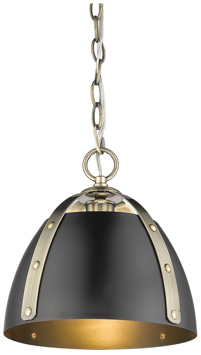 Aldrich 10" Wide Aged Brass 1-Light Mini Pendant with Matte Black Shad