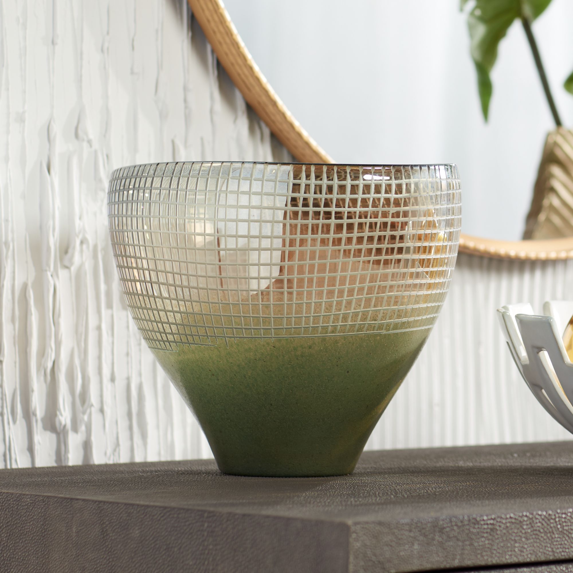 Green Hashed Top 10 1/2" Wide Glass Bowl
