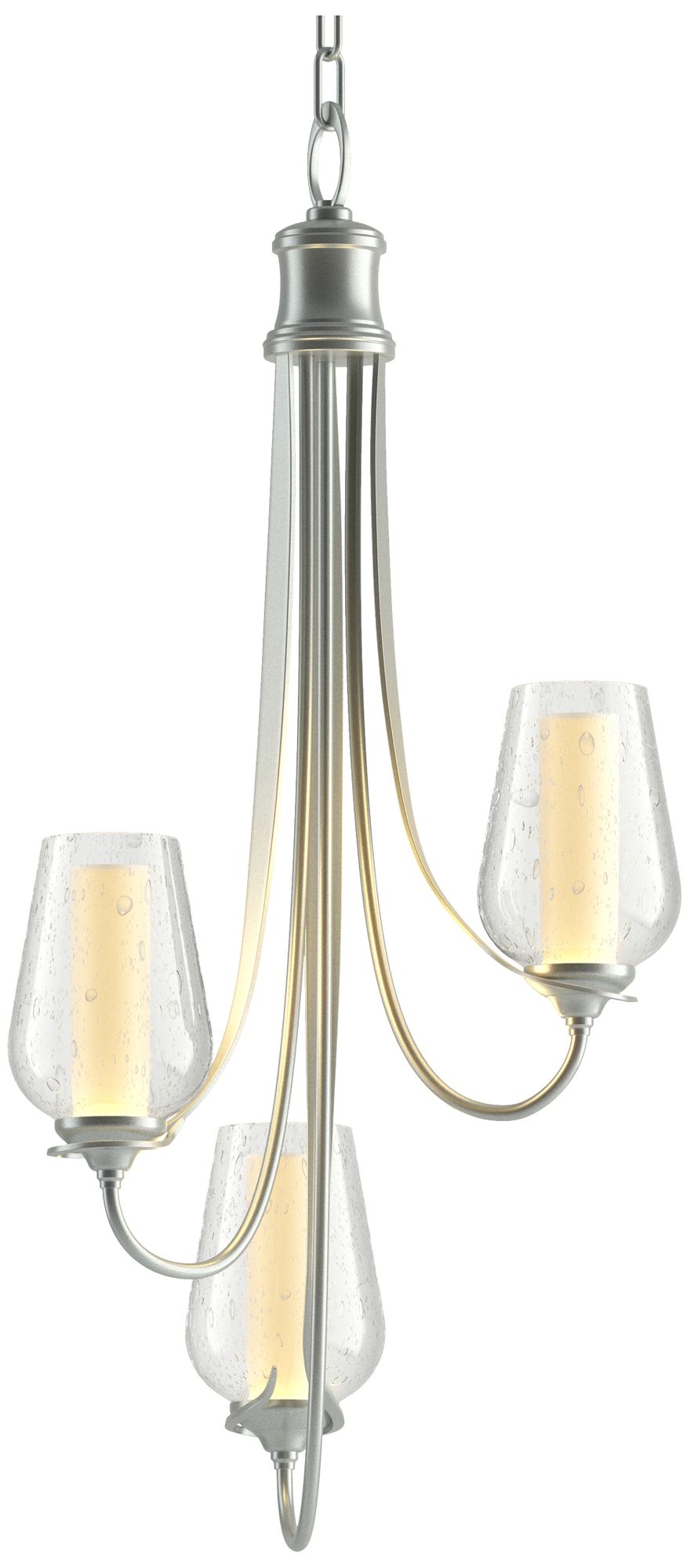 Flora 15.8"W 3 Arm Vintage Platinum Chandelier With Opal and Seeded Gl