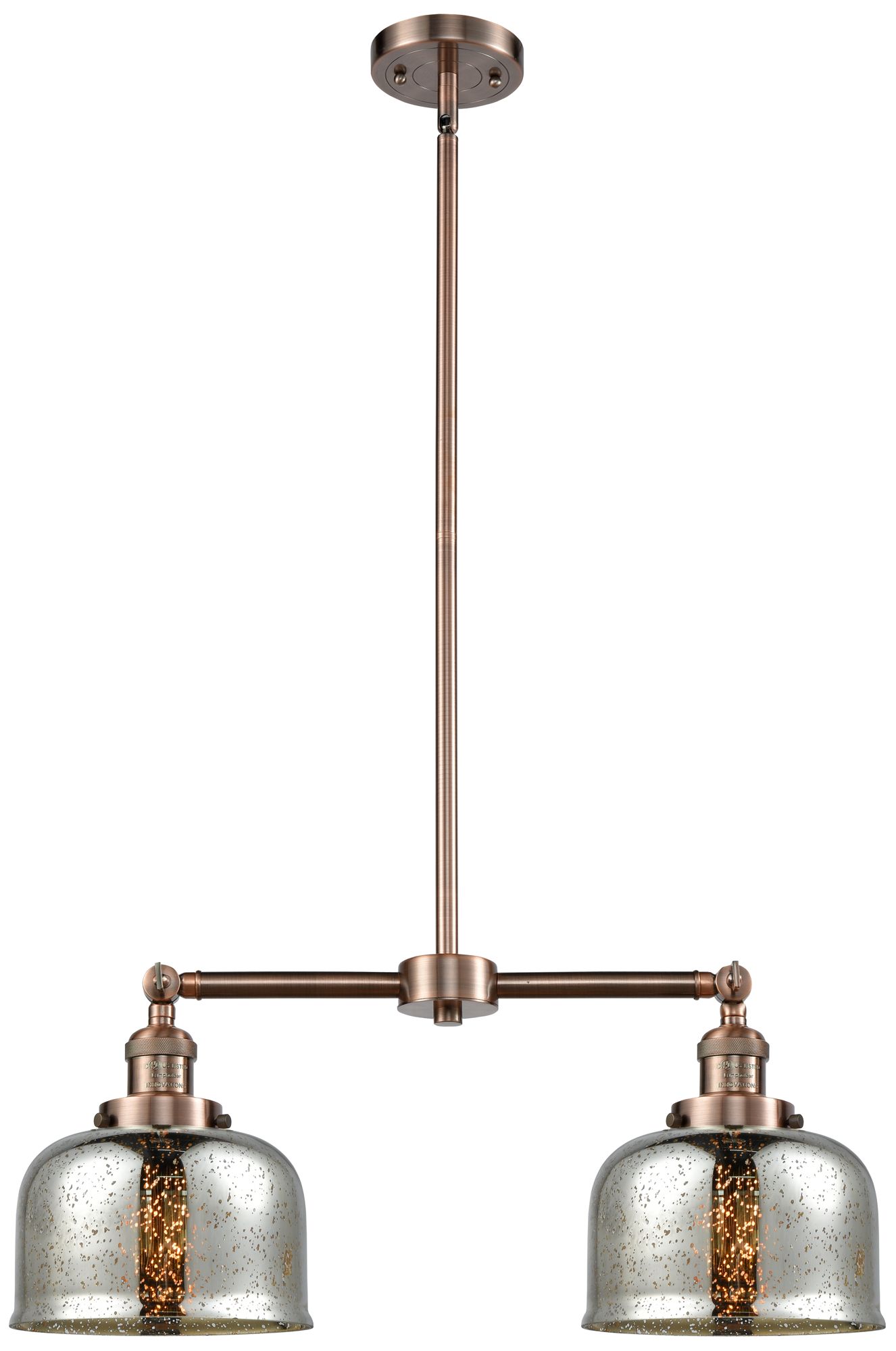 Large Bell 24" 2-Light Antique Copper Island Light w/ Mercury Shade
