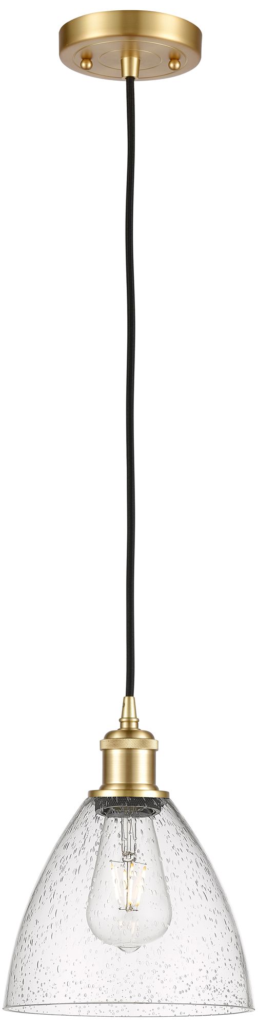 Ballston Bristol Glass 8" LED Mini Pendant - Satin Gold - Seedy Shade