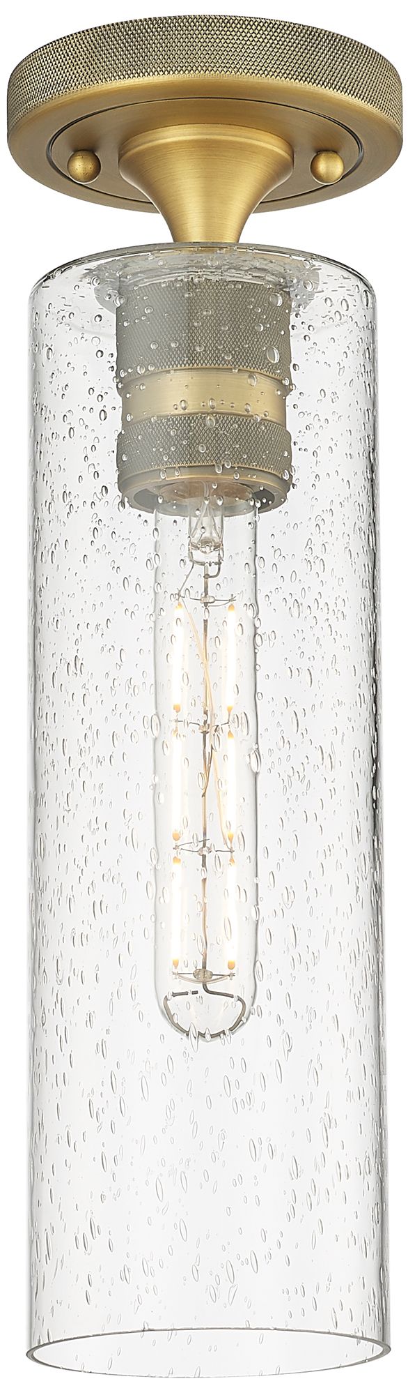 Crown Point 4" Wide Brushed Brass Flush Mount with Seedy Shade
